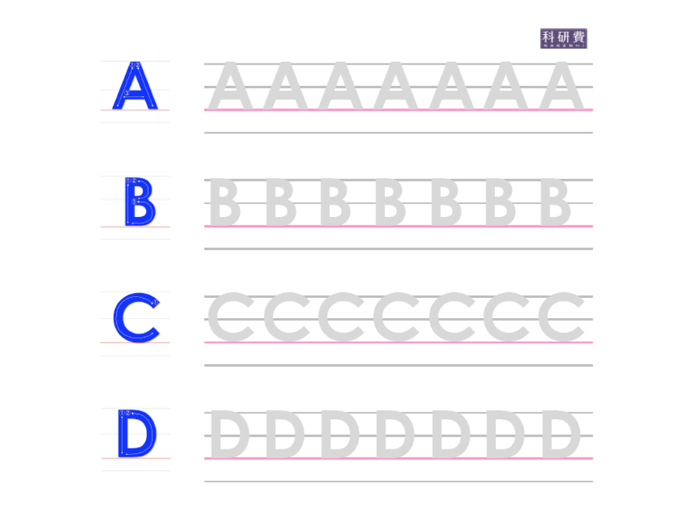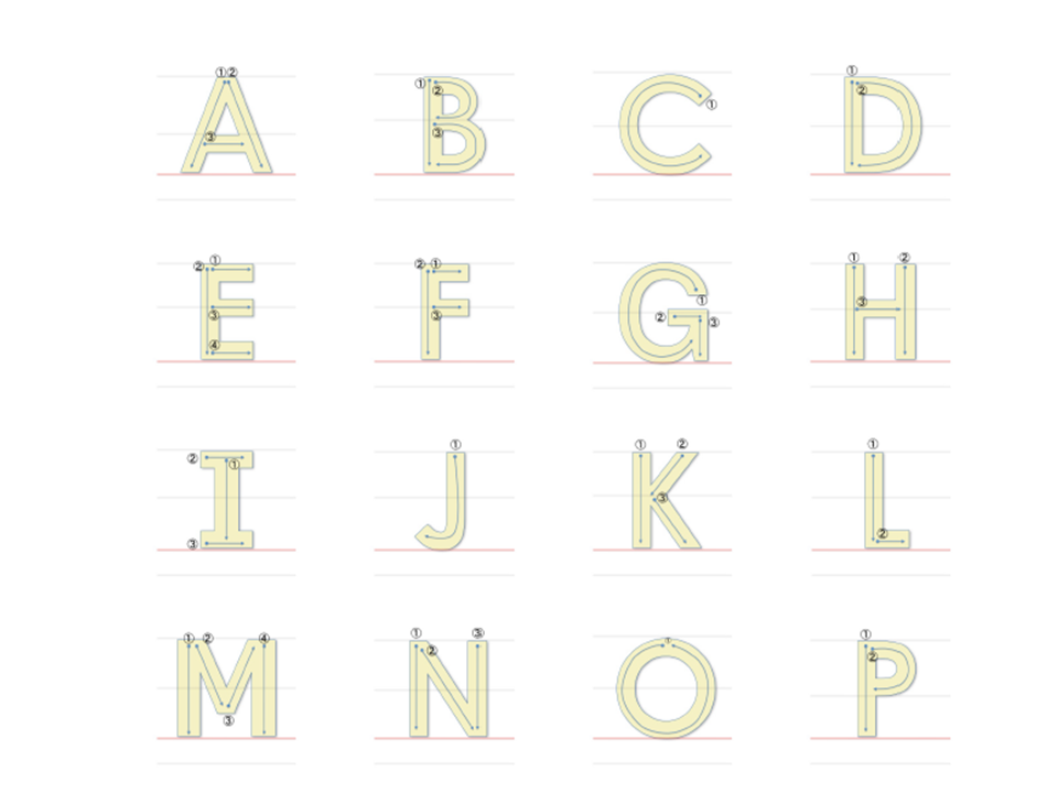 アルファベットの学習教材(形の認識と定着:大文字・小文字の書き方・筆順)